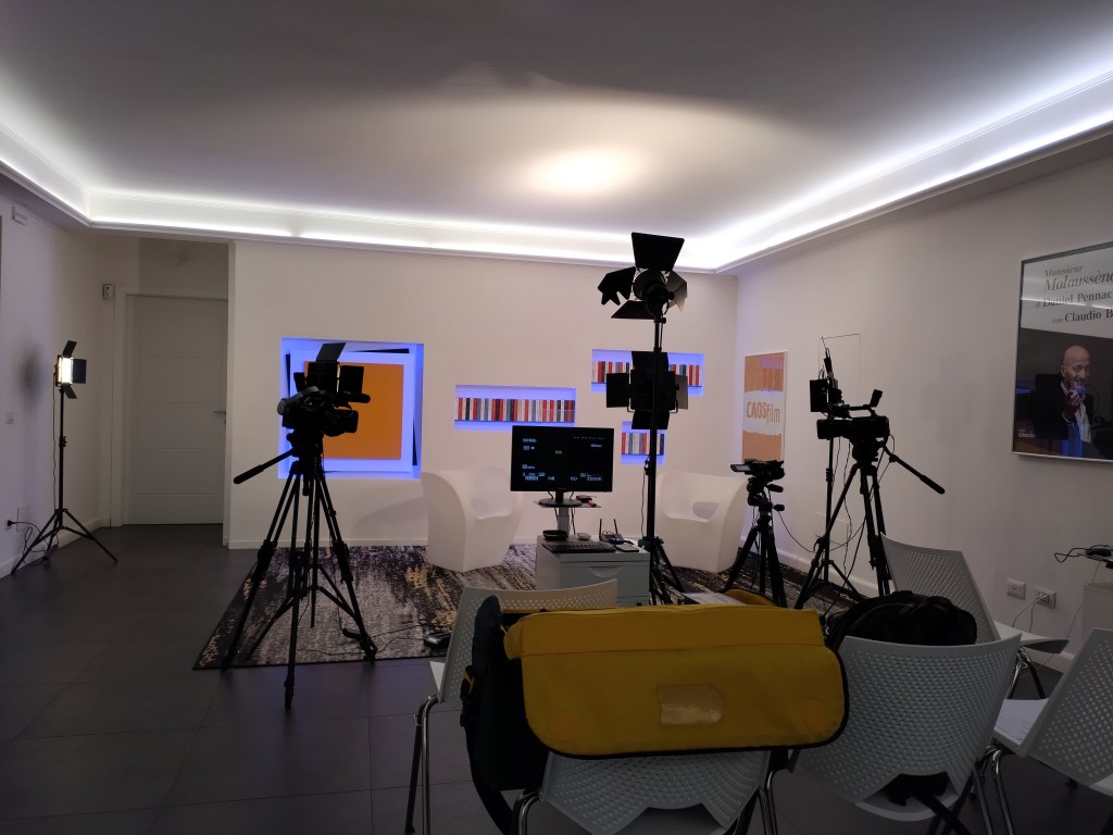 Prima dell’intervista ho un breve colloquio per stabilire lo svolgersi con la presentatrice, la quale si mostra molto preparata sui miei libri poi si inizia: sono rilassato, sereno e parlo liberamente.
